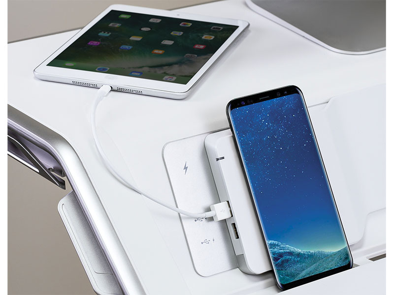 Ce modèle inclut plusieurs fonctionnalités telles que l’emplacement pour chargement sans fil d’un smartphone, protection antibactérienne Microban, passe-câbles…